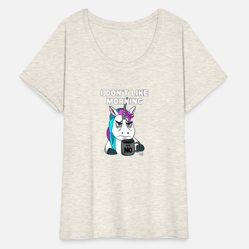 Grumpy funny unicorn with coffee mug like morning