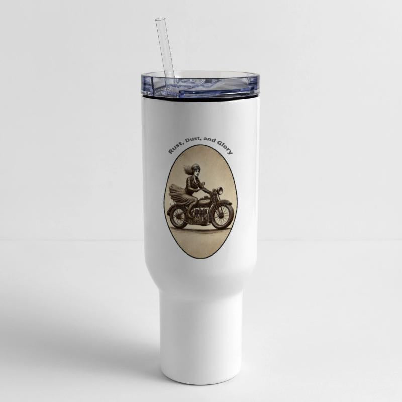 - Travel tumbler with lid and handle